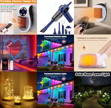 Lighting, heating devices, and smart home gadgets for everyday comfort.